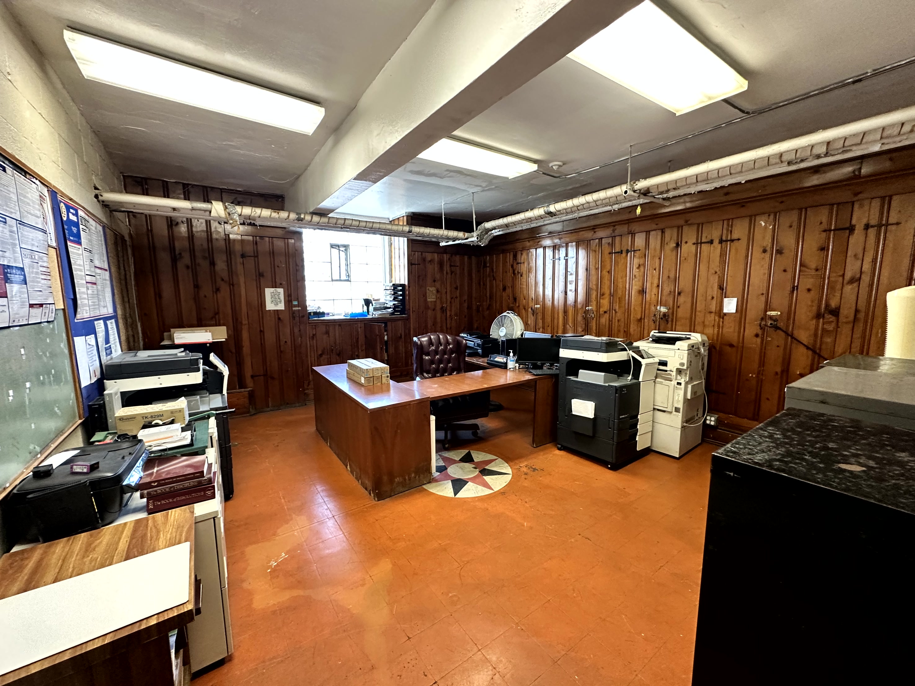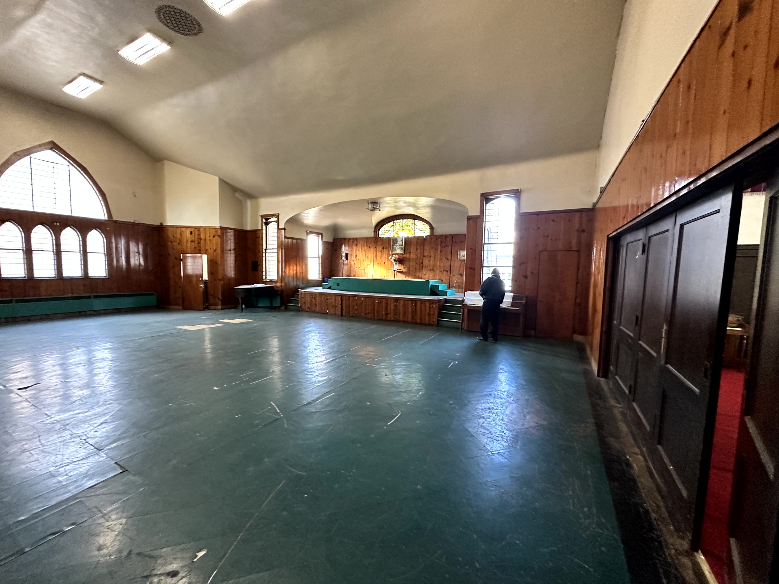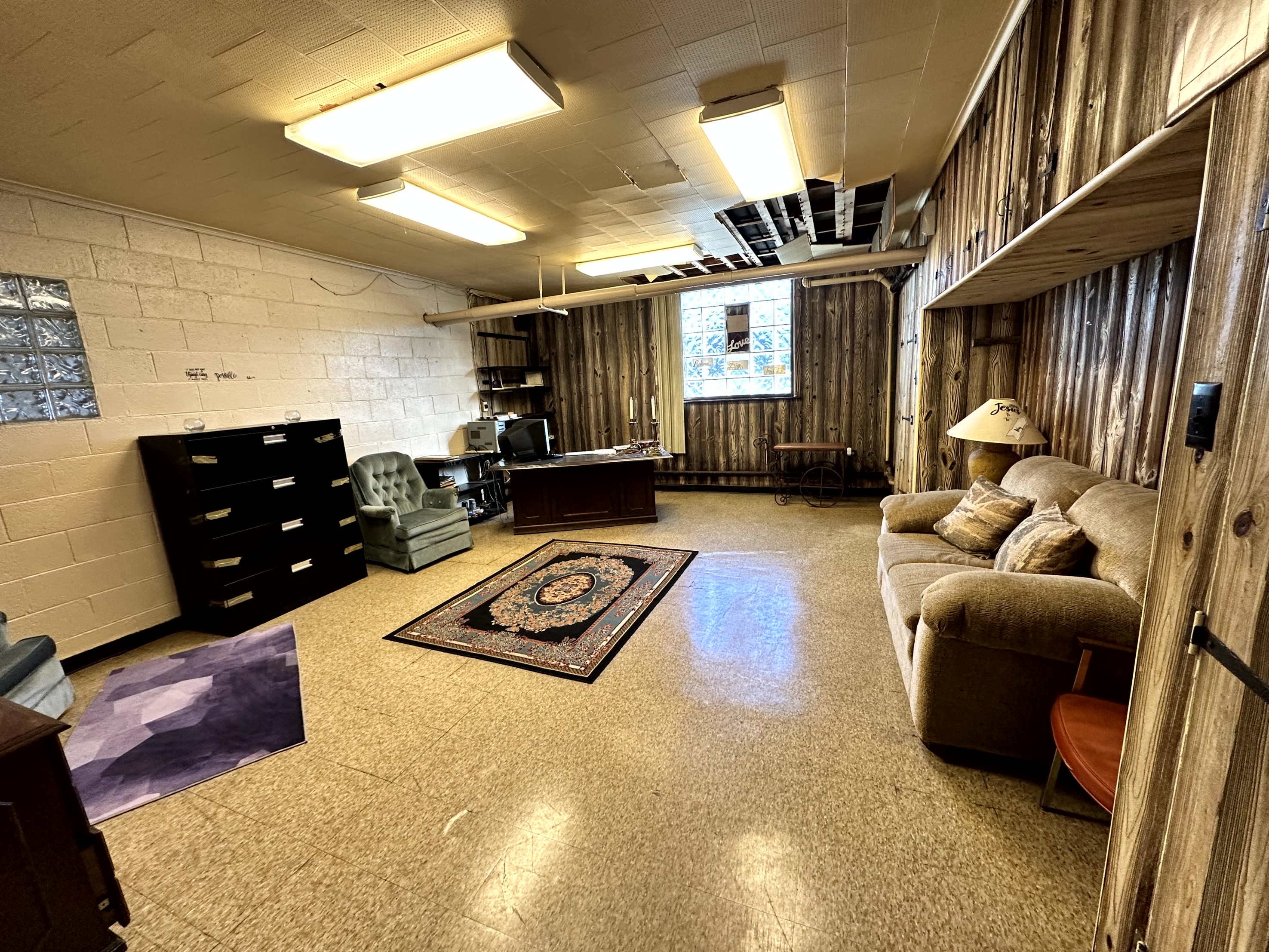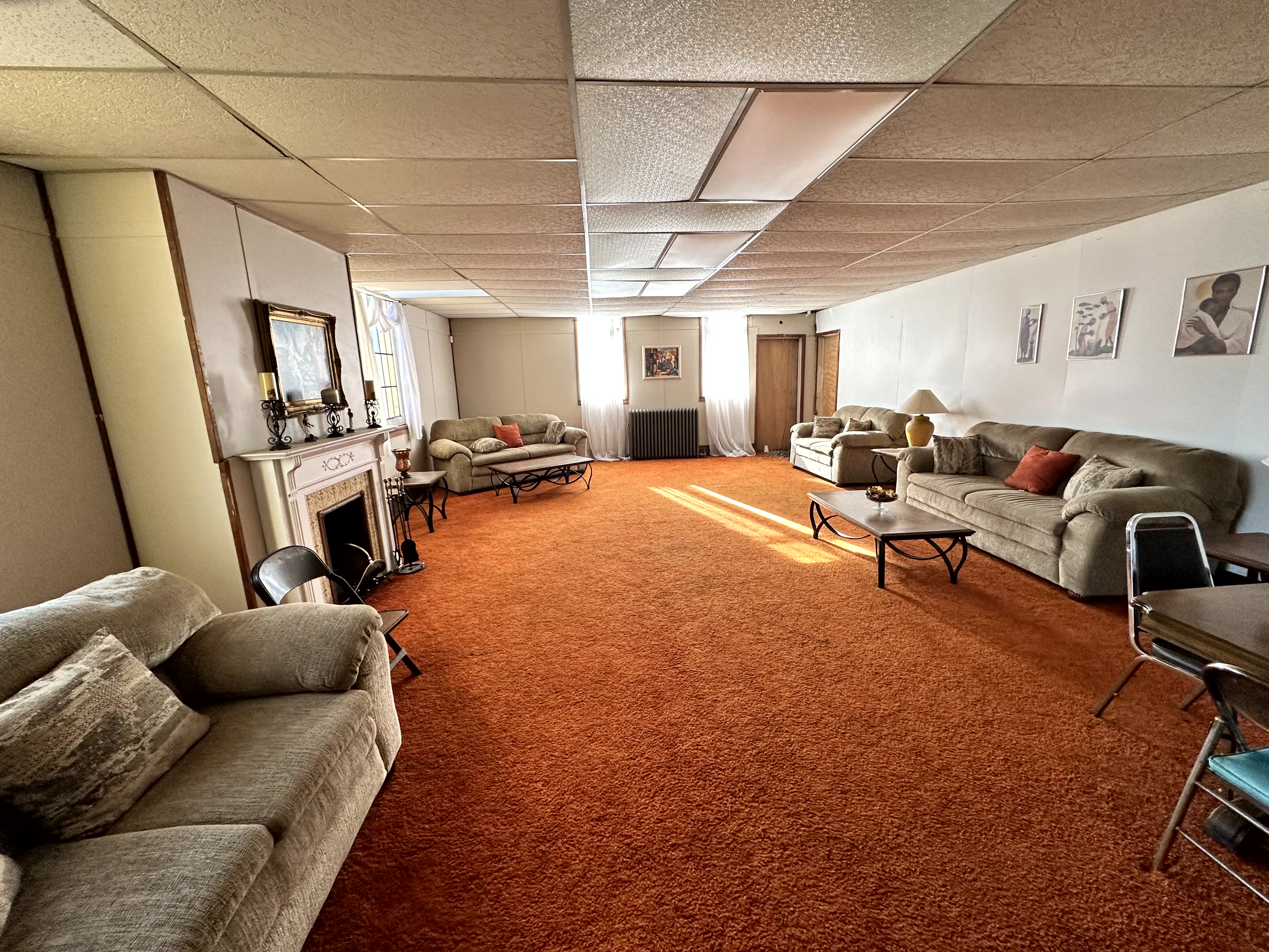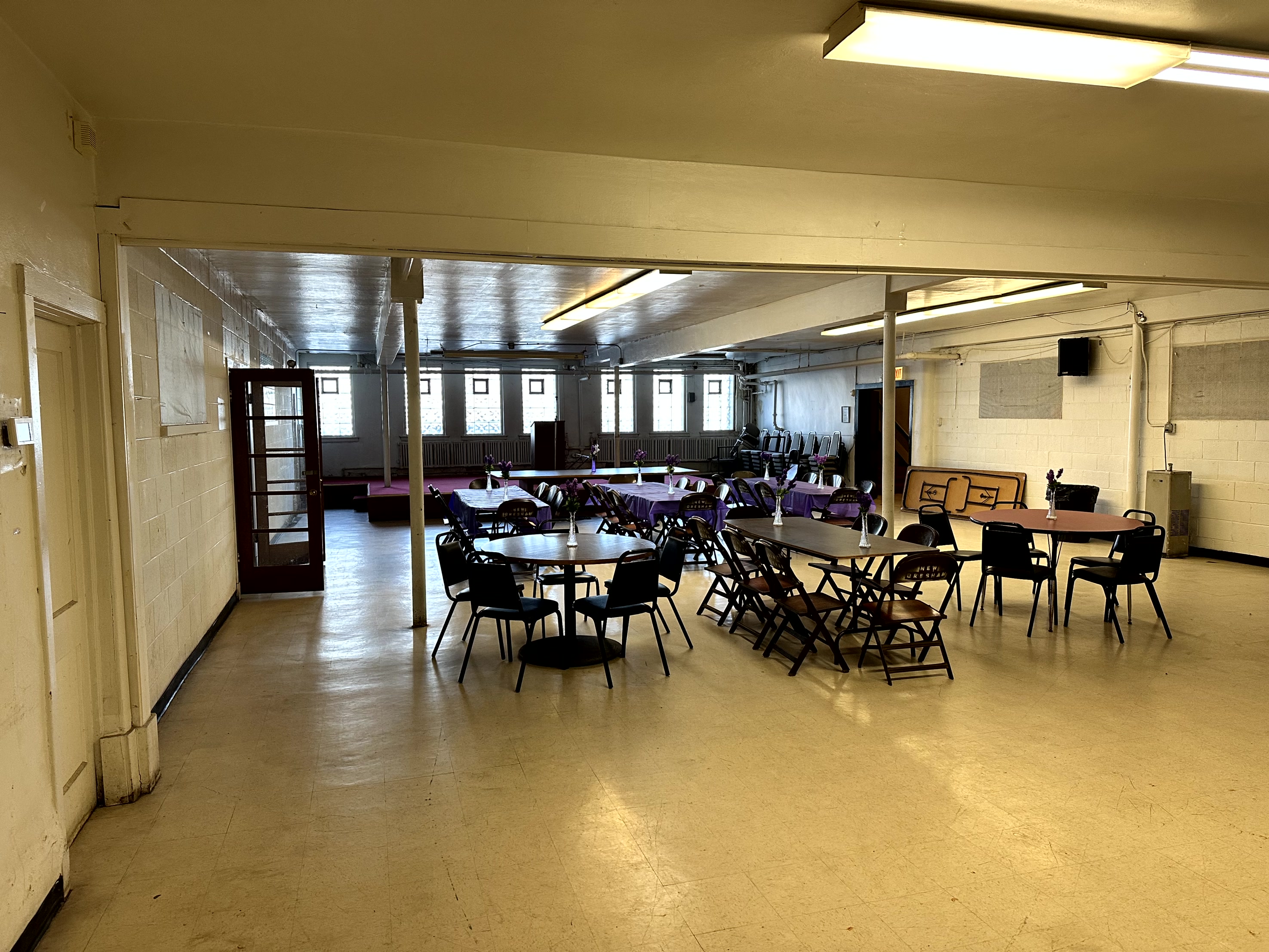 » The lower level fellowship hall can seat 100± and can also be used as a chapel. There is also a full kitchen, offices, furnace room, men’s and women’s washrooms, and a large room for a nursery on this level.