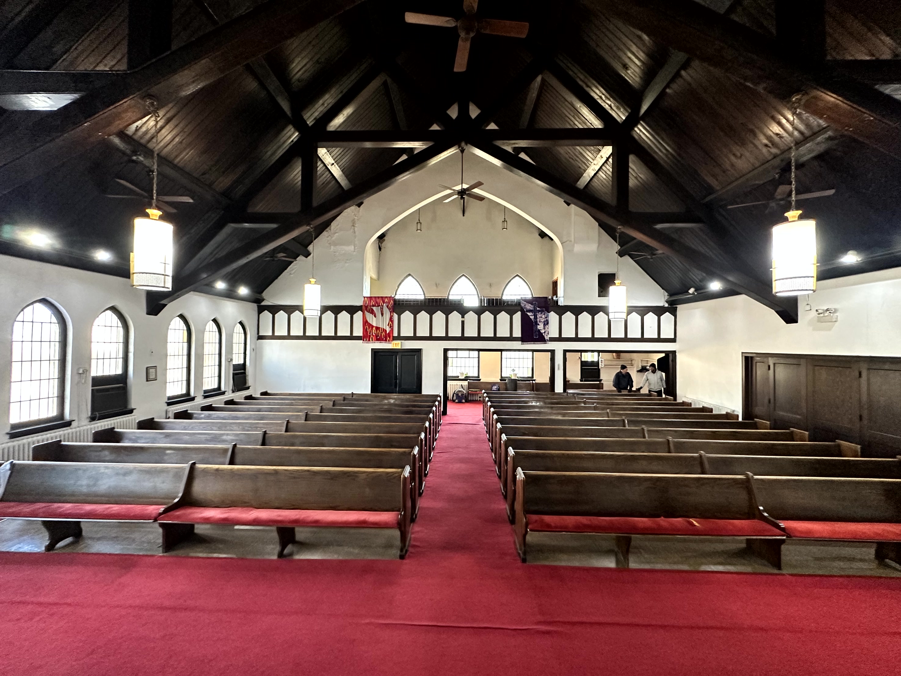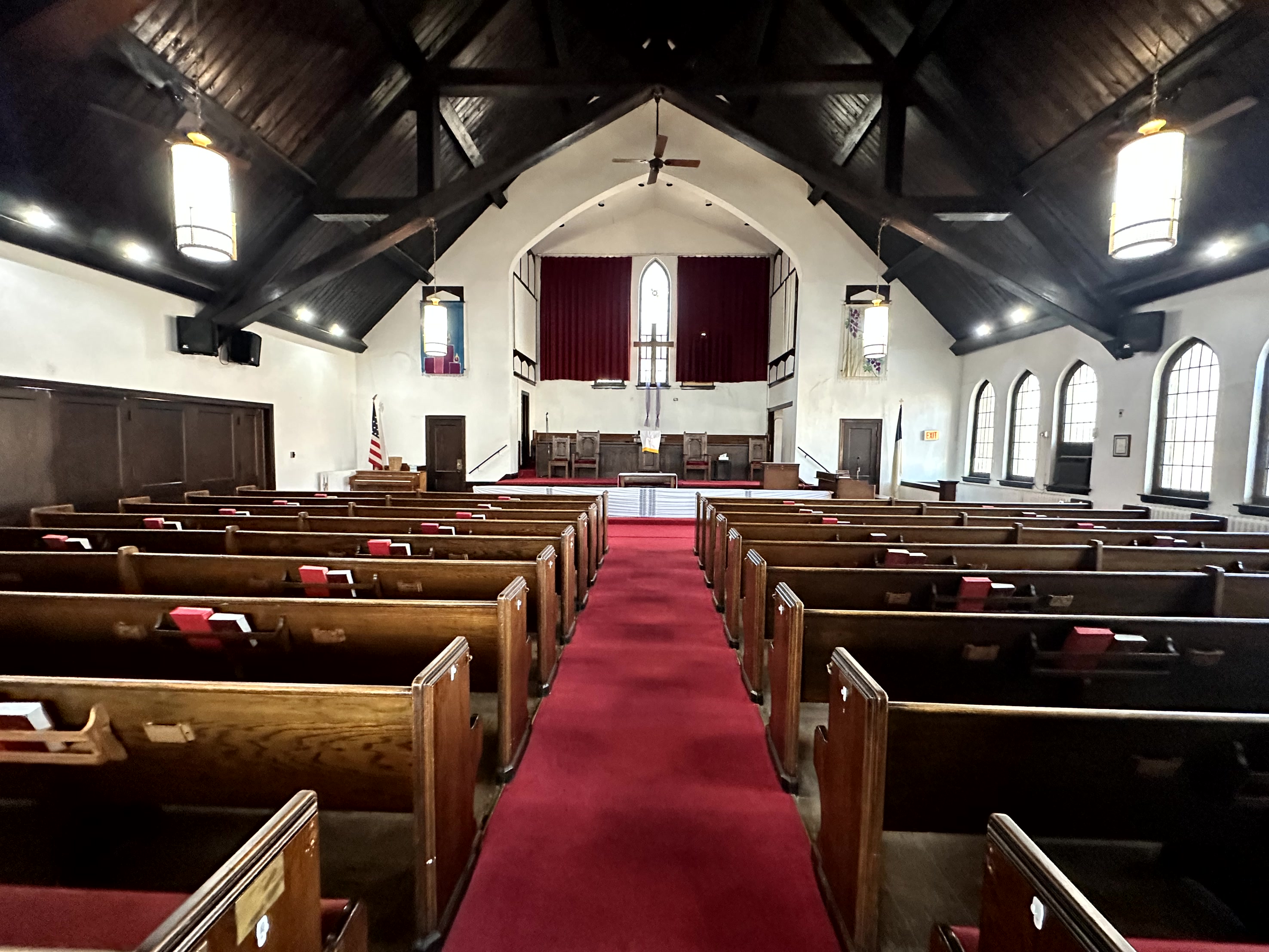 » The sanctuary can seat 310± and there is an expansion room into the narthex which can seat another 100±. There is a large parlor/sitting room with a fireplace adjacent to the sanctuary.