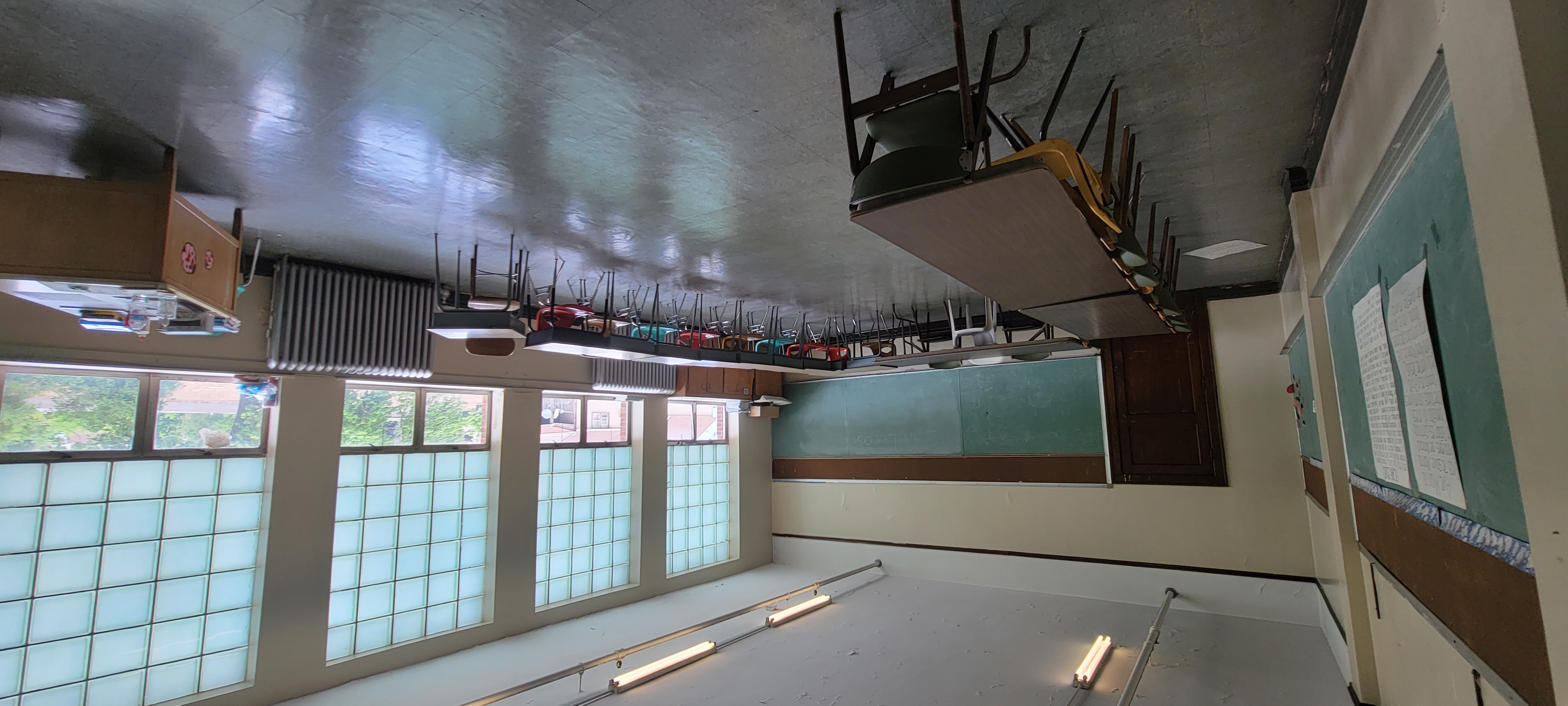 • The two-story school area has one classroom, offices and boys and girls washrooms on the first floor.