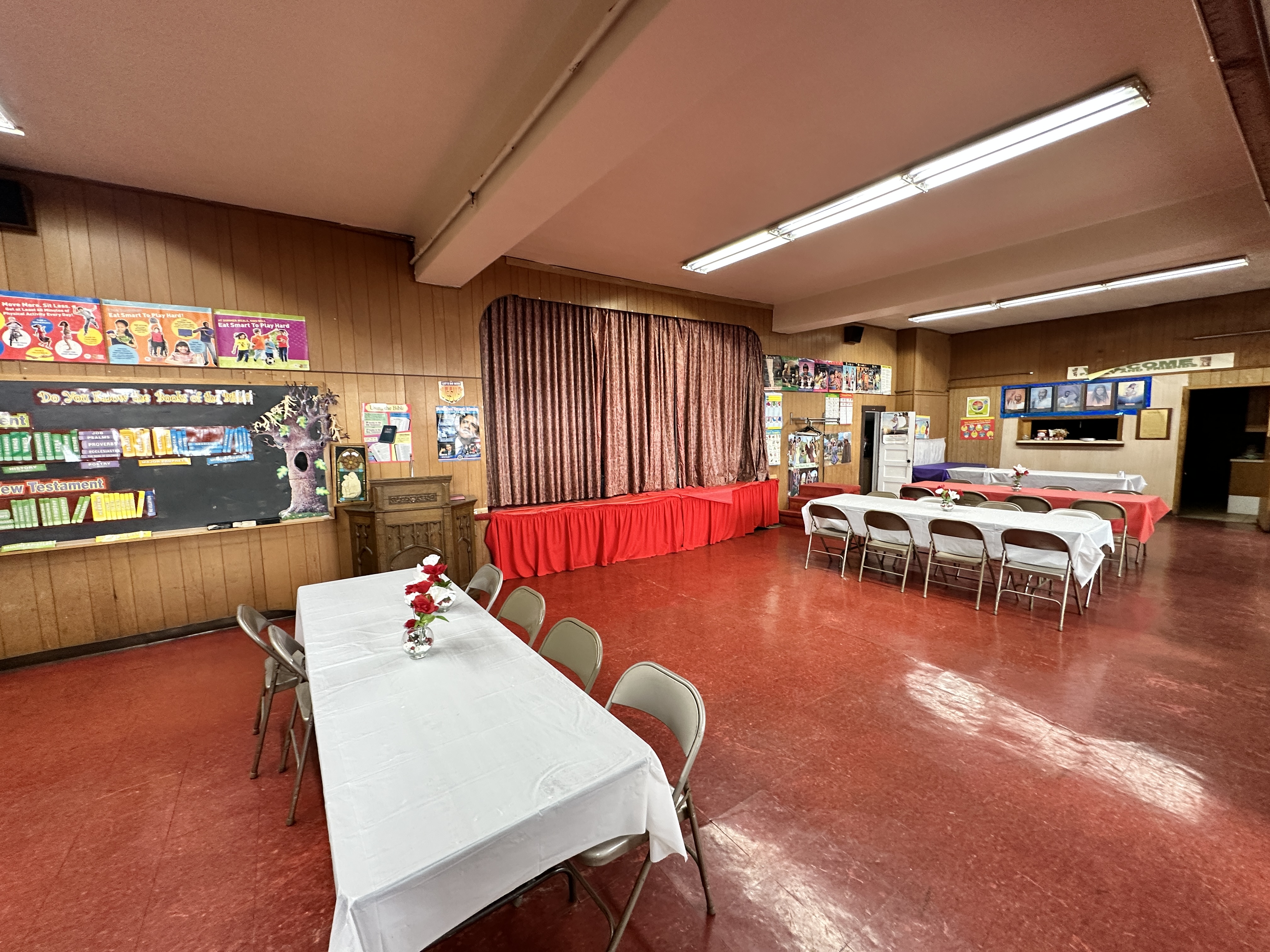 SF 1-story building with an improved basement. On the main level is the sanctuary (capacity 350±),