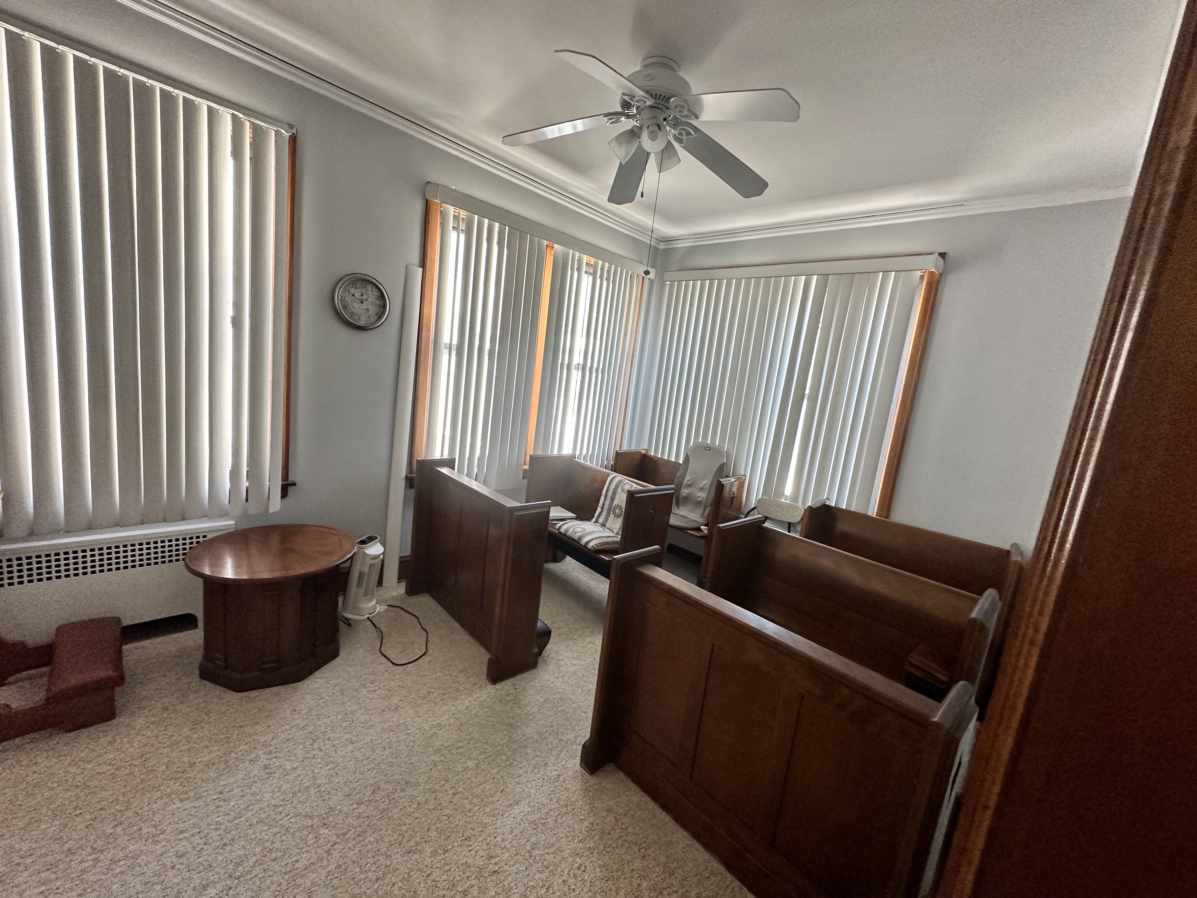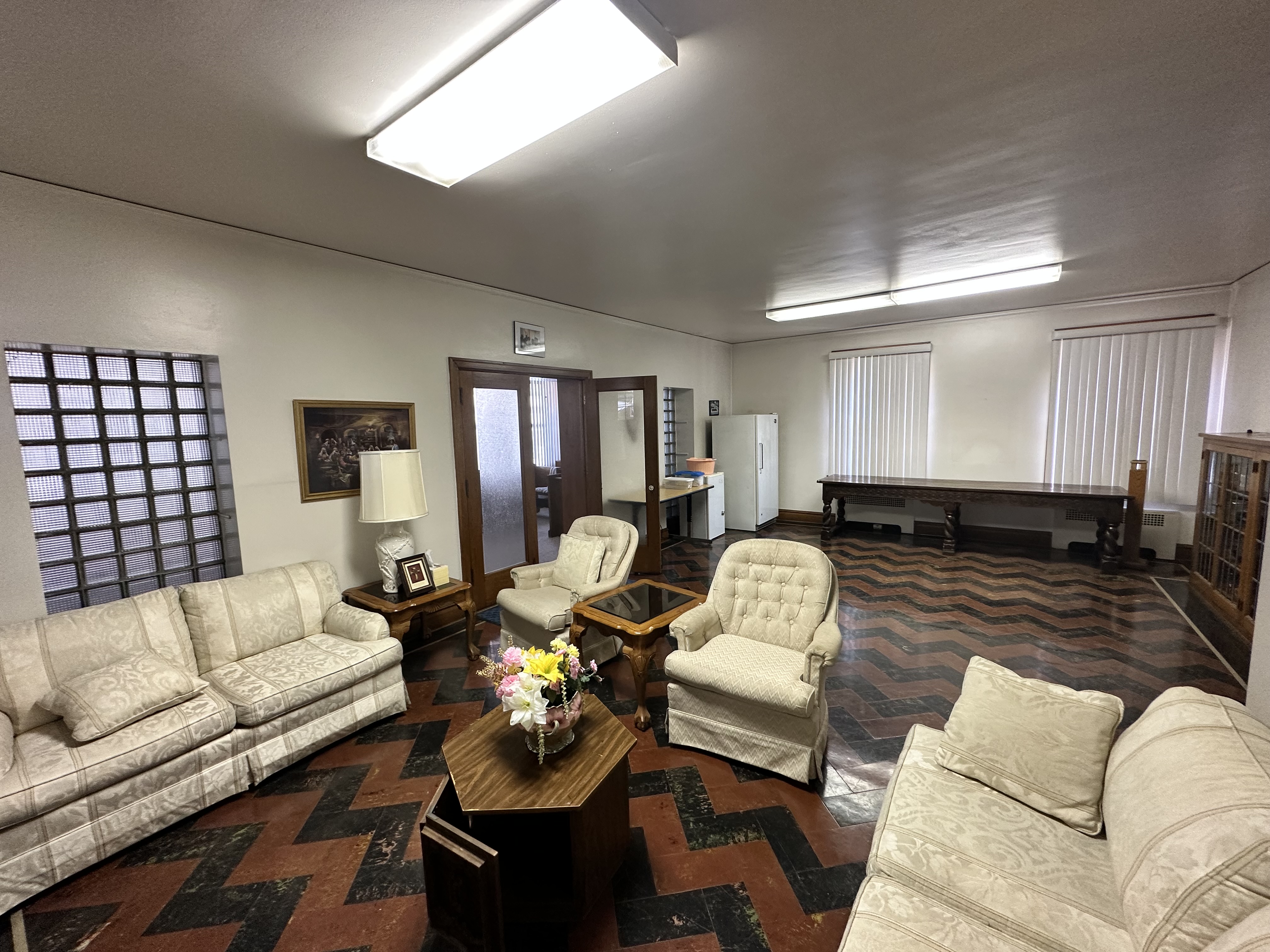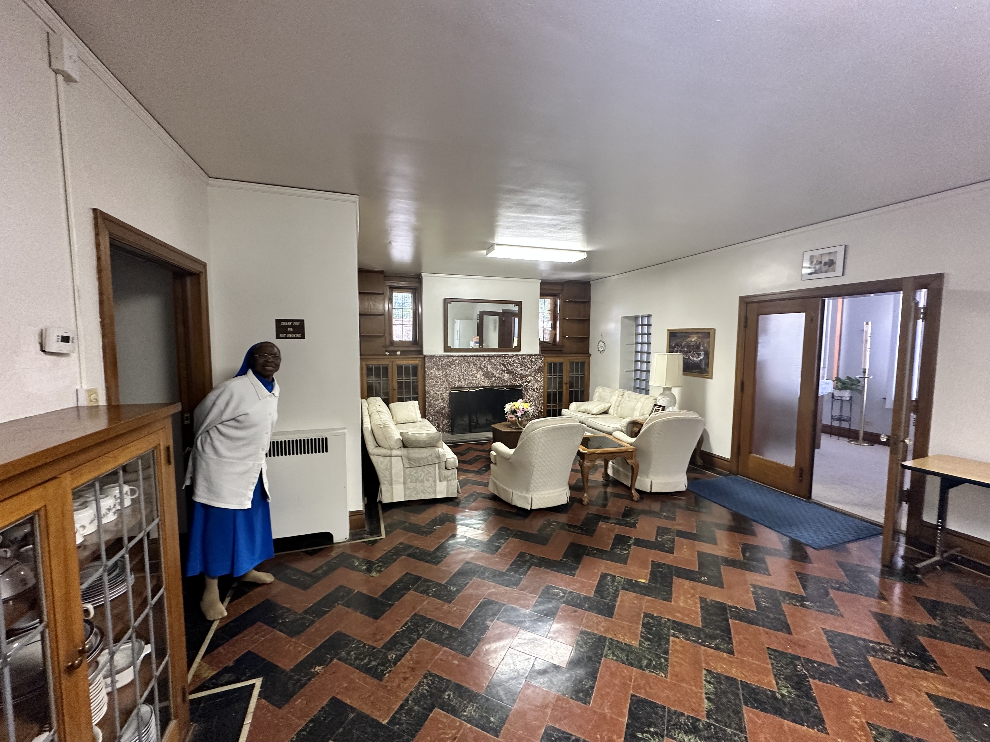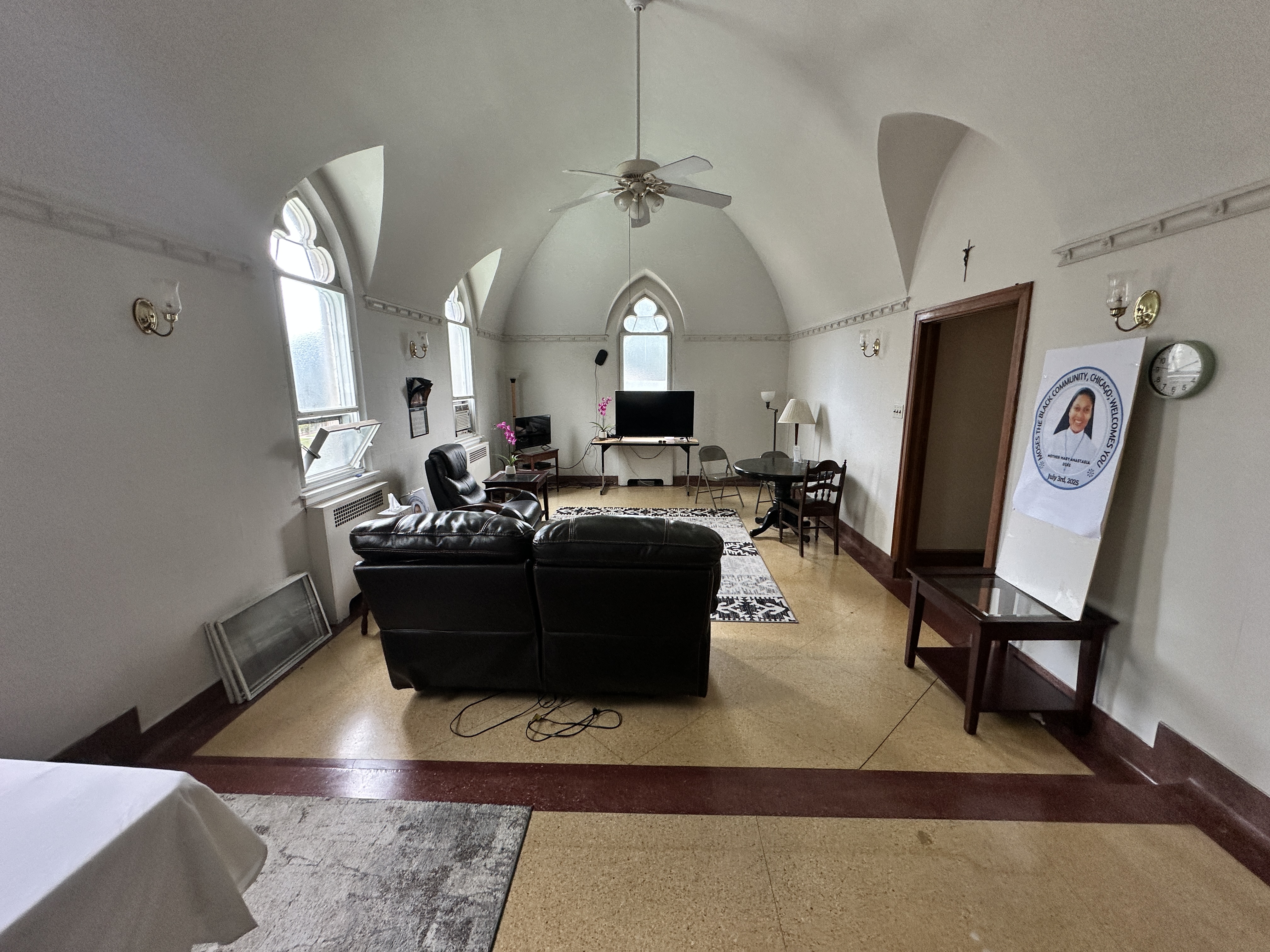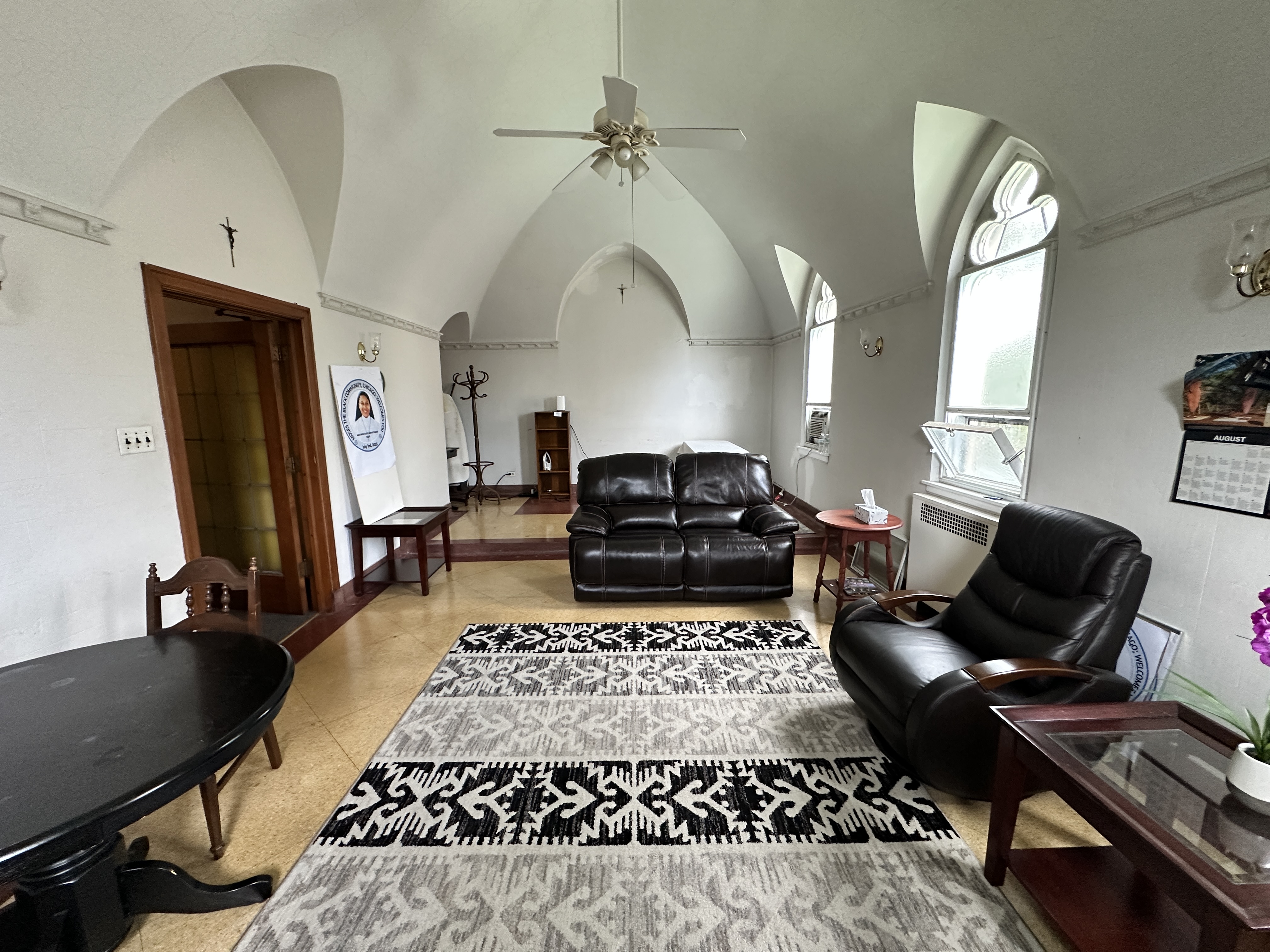 • The main floor of the former convent has a living room, small chapel, offices, a kitchen, a dining room and a bathroom. The second floor has four bedrooms and shared bathrooms.