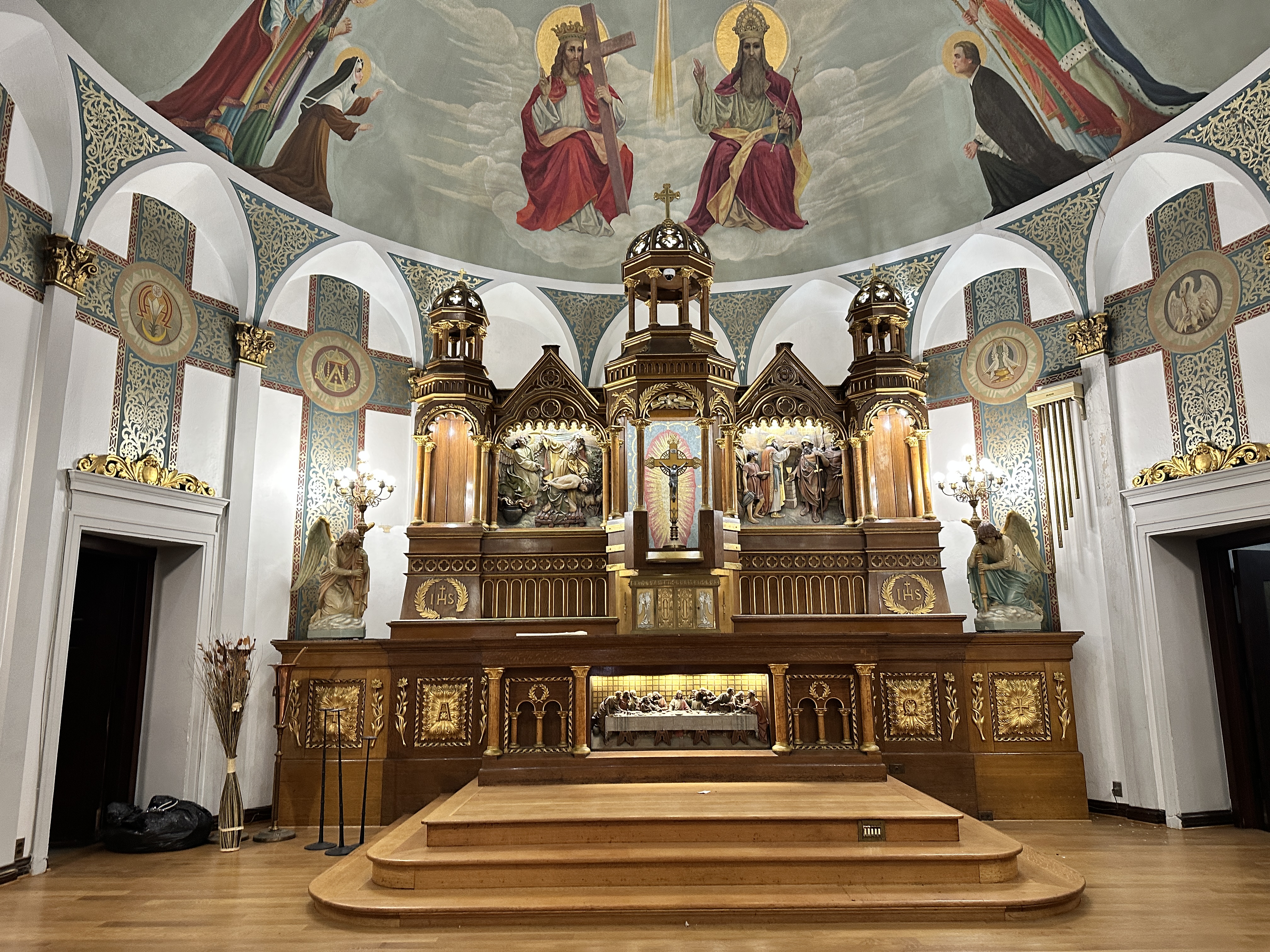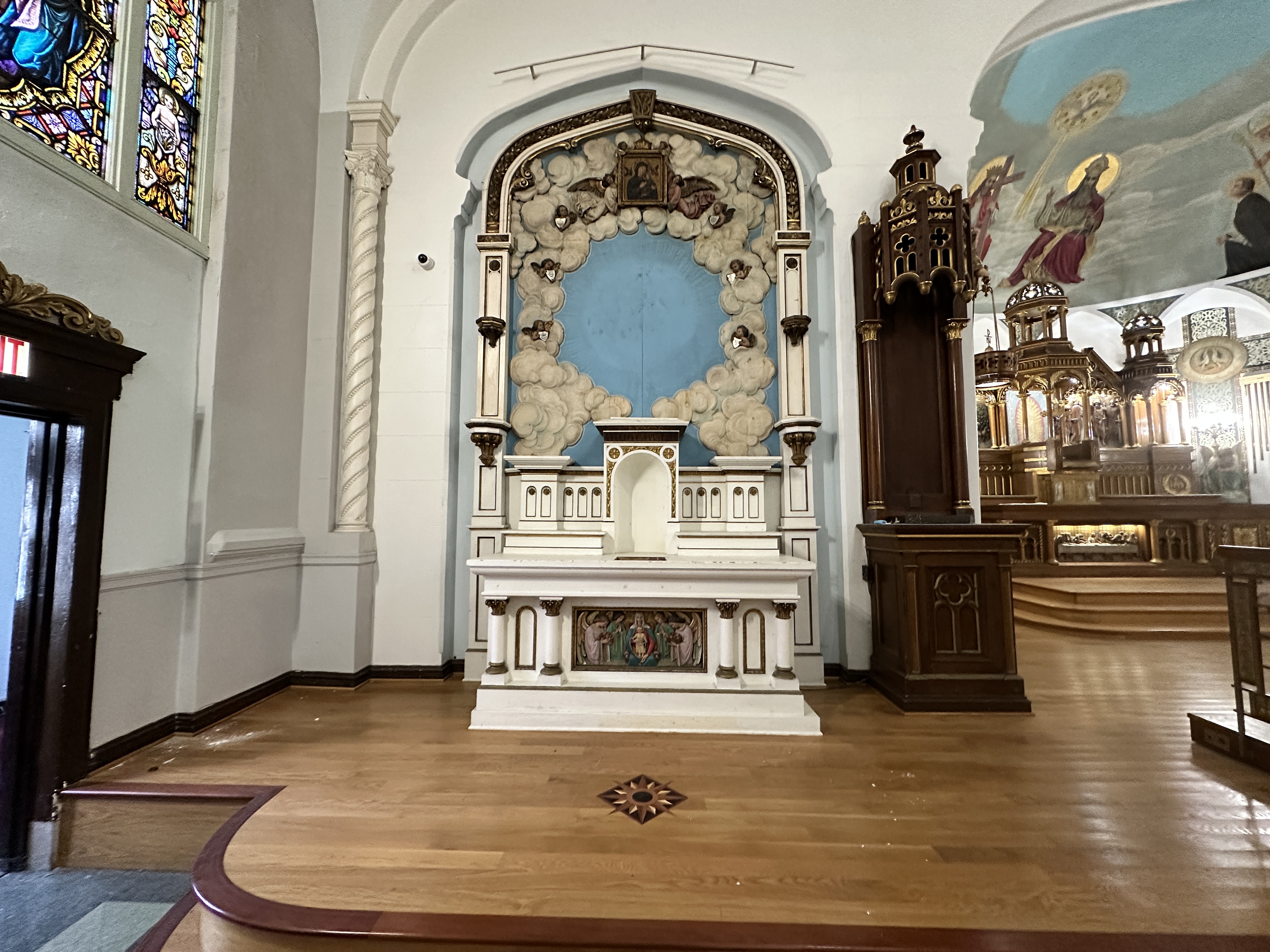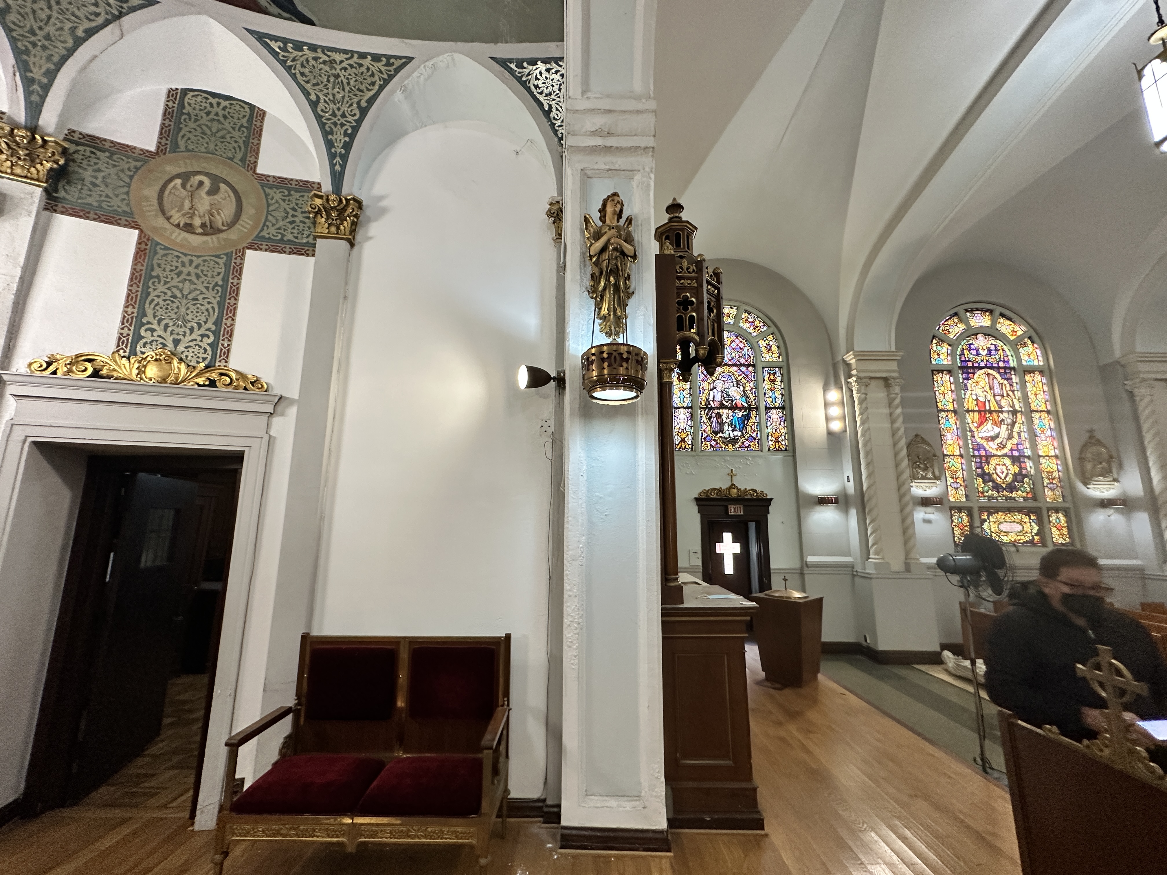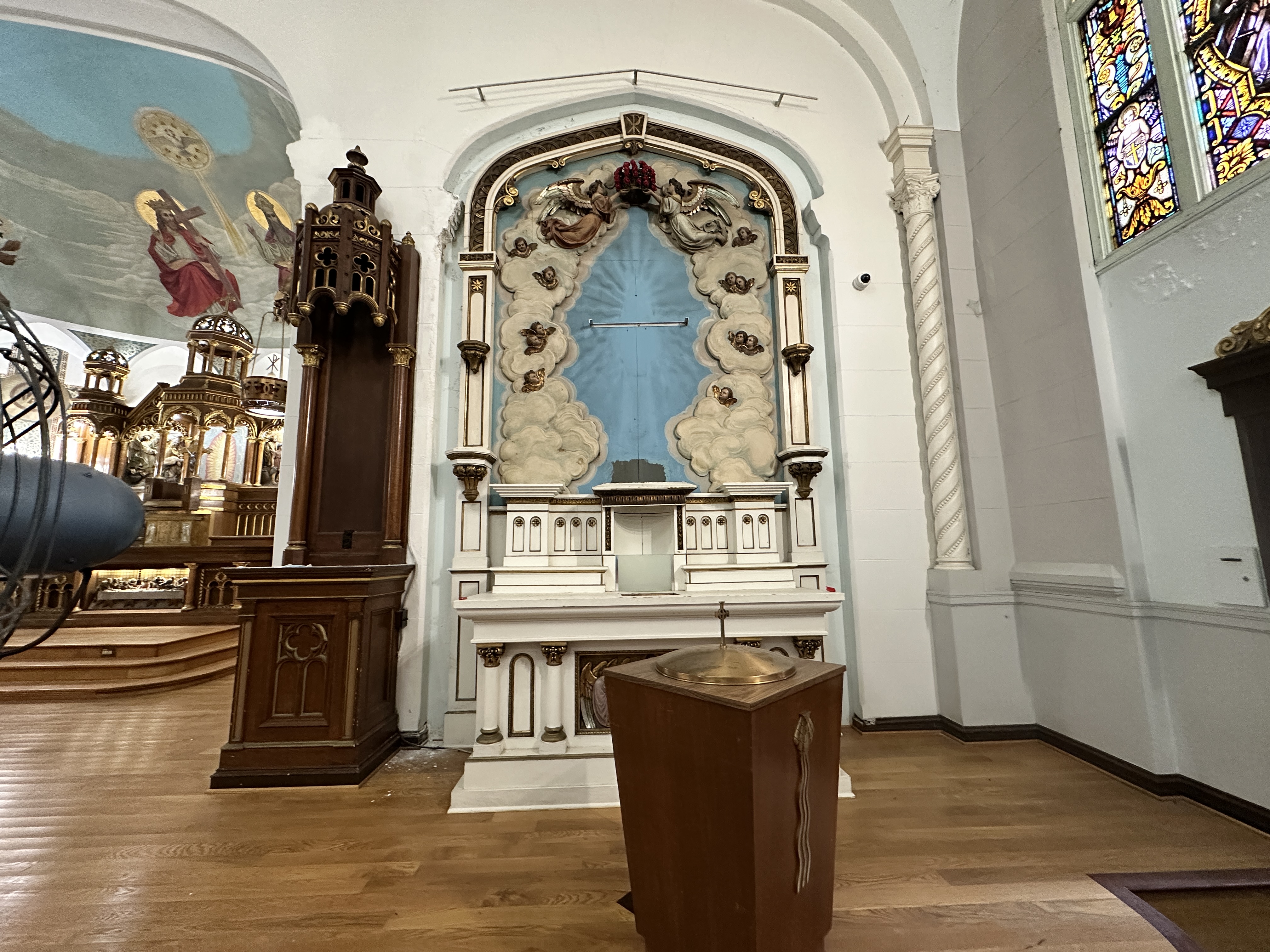 • The sanctuary can seat 675±. There is a Parish Hall with a stage that can seat 150± and a kitchen.
