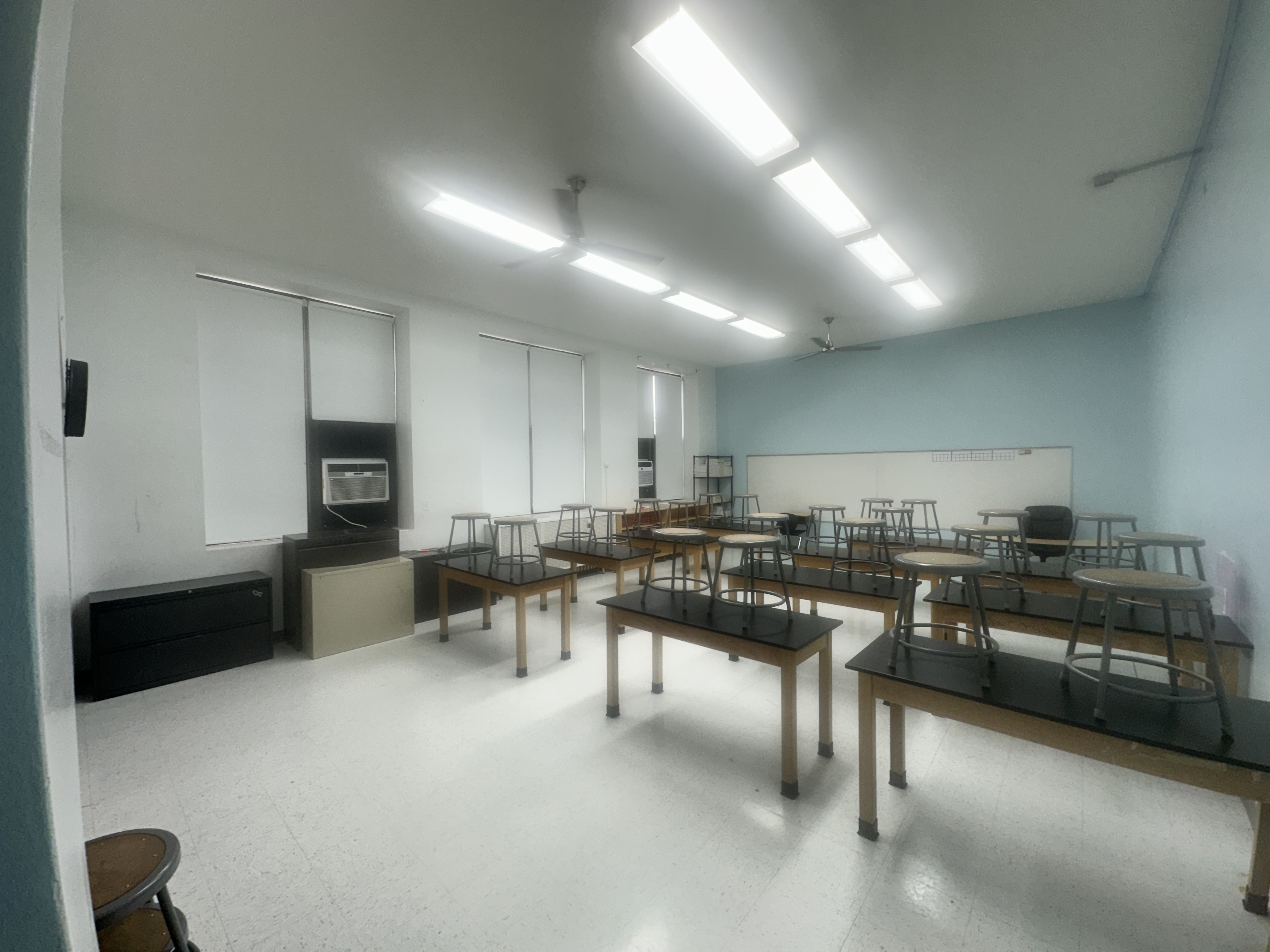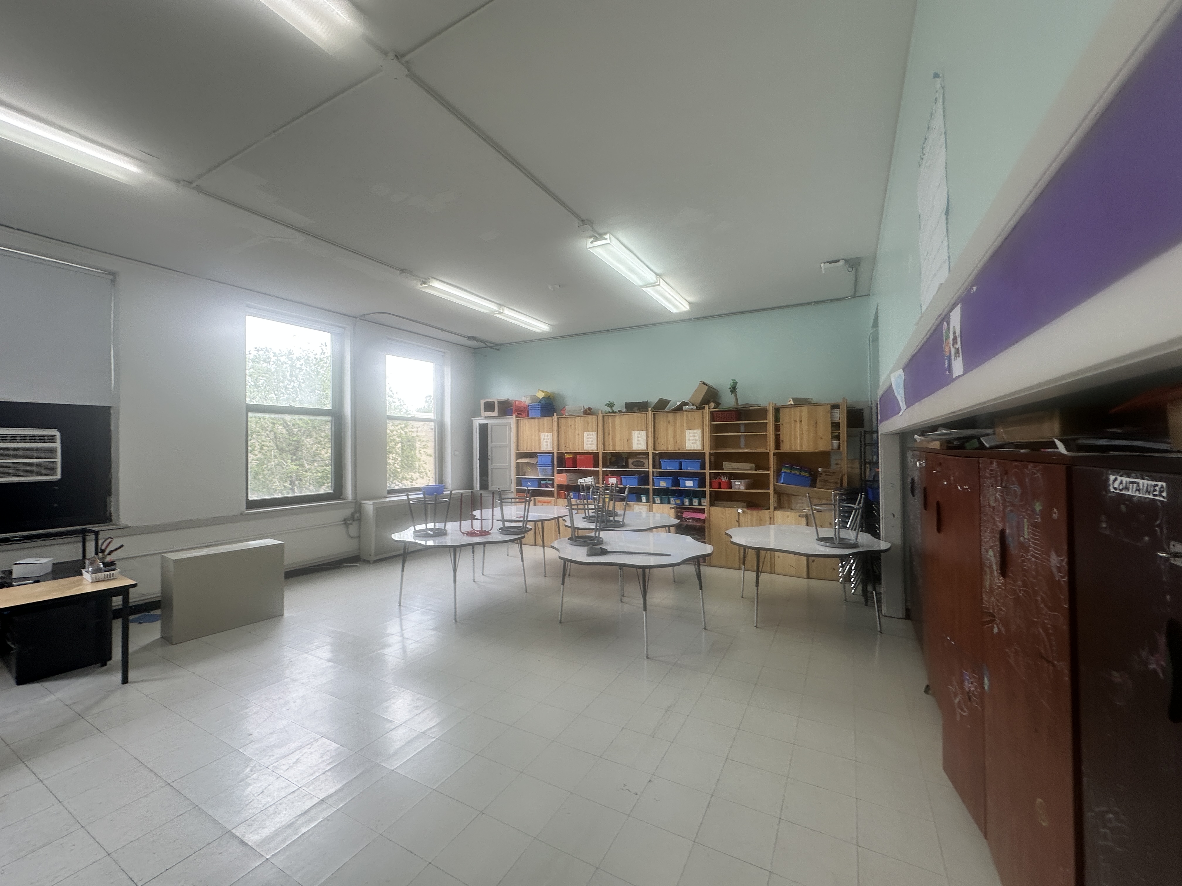 • The school is connected to the church and contains six classrooms on the first floor and twelve classrooms on the second floor. The building has an elevator and boys & girls washrooms.